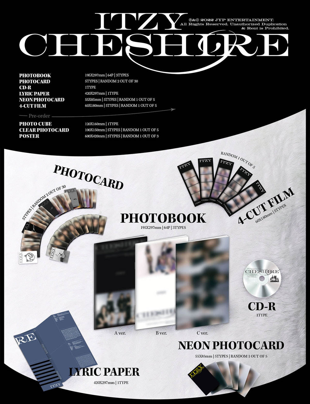ITZY's «CHESHIRE» is available in three versions: Black Cover, White Cover & Black Cover (Group)